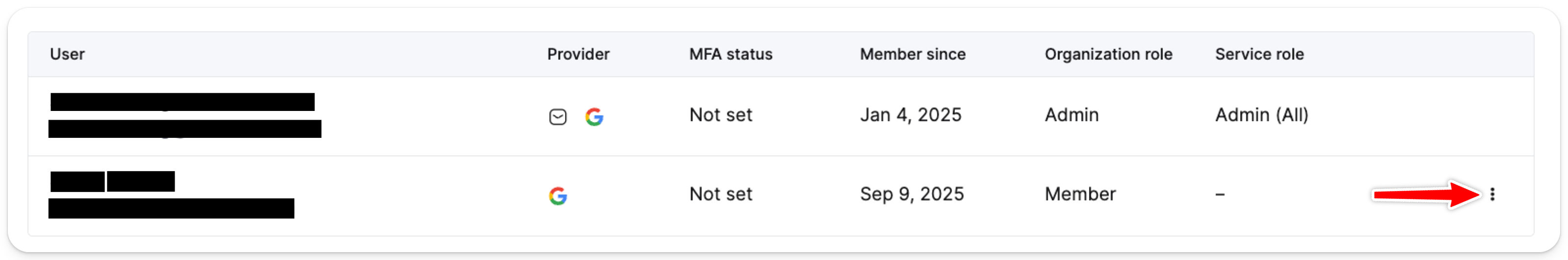 Select the menu item at the end of the row for the user that you which to modify access for: