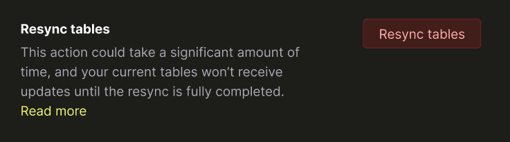 1. Вам может понадобиться выполнить серьезные изменения схемы на исходных таблицах, что сломает существующий ClickPipe, и вам нужно будет его перезапустить. Вы можете просто нажать Resync после внесения изменений.